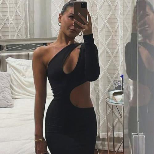 GIANNA Hollow Belly One-shoulder Sleeve Maxi Dress